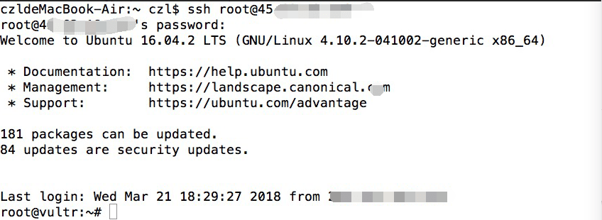 如果你是Mac苹果电脑操作系统,更简单,无需下载xshell,系统可以直接连接VPS。直接打开Terminal终端,输入:ssh [email protected](将45.45.43.21换成你的IP),之后输入你的密码就可以登录了(输入密码的时候屏幕上不会有显示)
