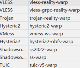 WARP 9:(同上 9 种,出站经 Cloudflare WARP)